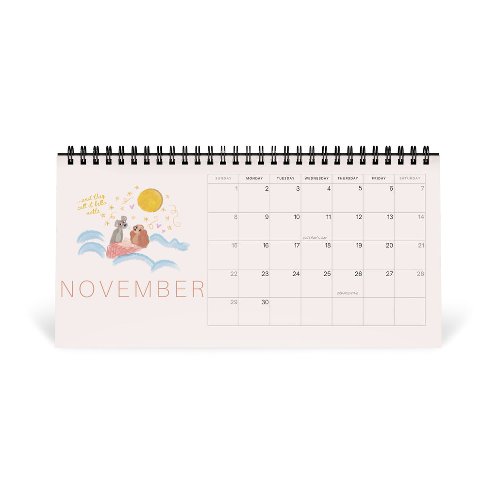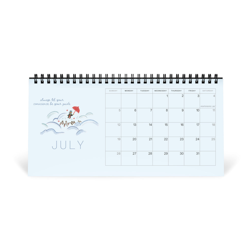 Add a little more magic to your month with this 2026 Disney Desktop Calendar! Featuring illustrated drawings of favorite Disney movies and scenes, each month comes with a quote! Plus this calendar also includes major holidays. We hope you love this extra magical way to spend 2026 with a little bit of extra pixie dust.