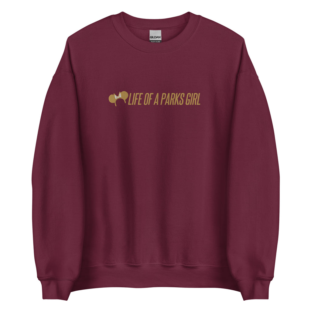Life of a Parks Girl EMBROIDERED Sweatshirt Disney Girl Sweatshirt- Gold Embroidery